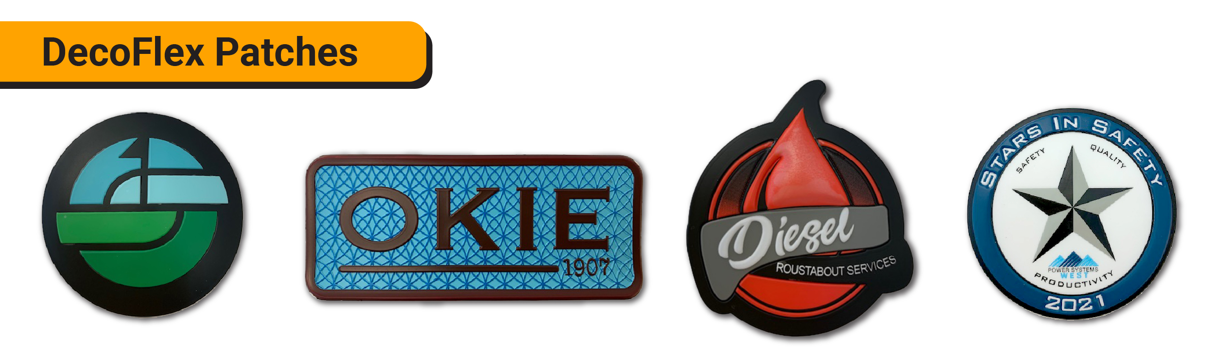 DecoFlex patches are made from thin, flexible TPU (thermoplastic polyurethane) and offer a sleek, dimensional finish. Think of them as the high-tech cousin to traditional patches: modern, metallic, and waterproof.